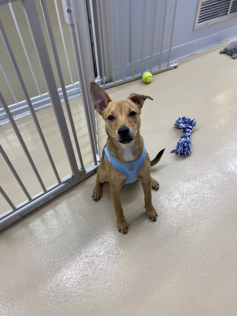 Meet Gypsy, a bundle of pure joy and limitless potential! This little girl will captivate your heart with her sweet and curious nature. Gypsy is a playful pup, always up for an adventure and ready to explore the world with her new family. With a heart as big as the great outdoors, she has so much love to give and is eager to find her forever home. Gypsy is a ray of sunshine, bringing warmth and happiness wherever she roams. She’s a quick learner, always eager to please, and will be your loyal companion through life’s twists and turns. Could you be the one to guide this little gypsy soul towards her forever home?